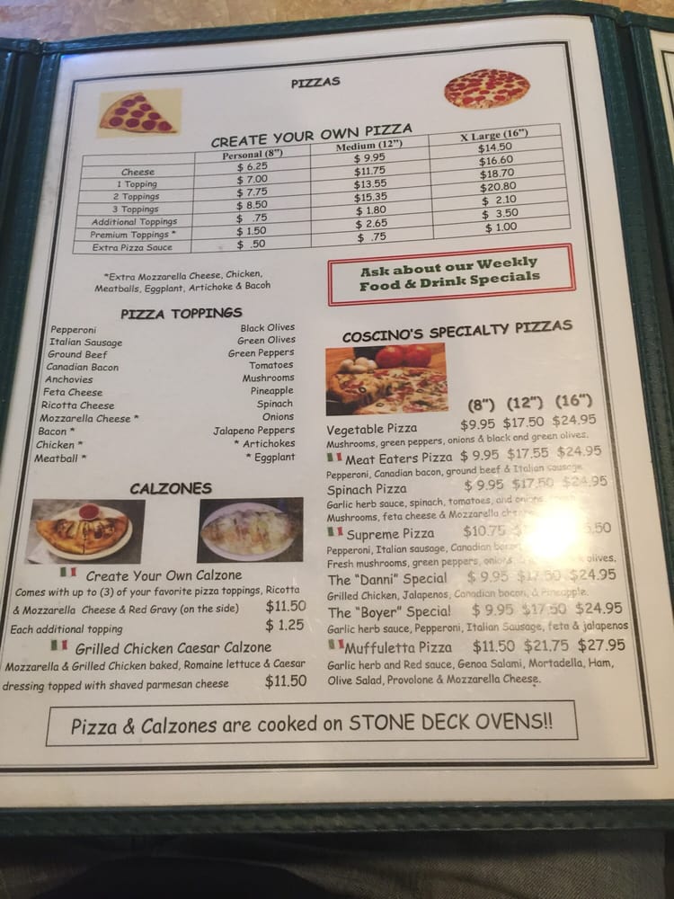 Whether you're in the mood for a classic Spaghetti and Meatballs or a slice of the Meat Eaters Pizza, Coscino's promises a delightful dining experience that you won't soon forget.